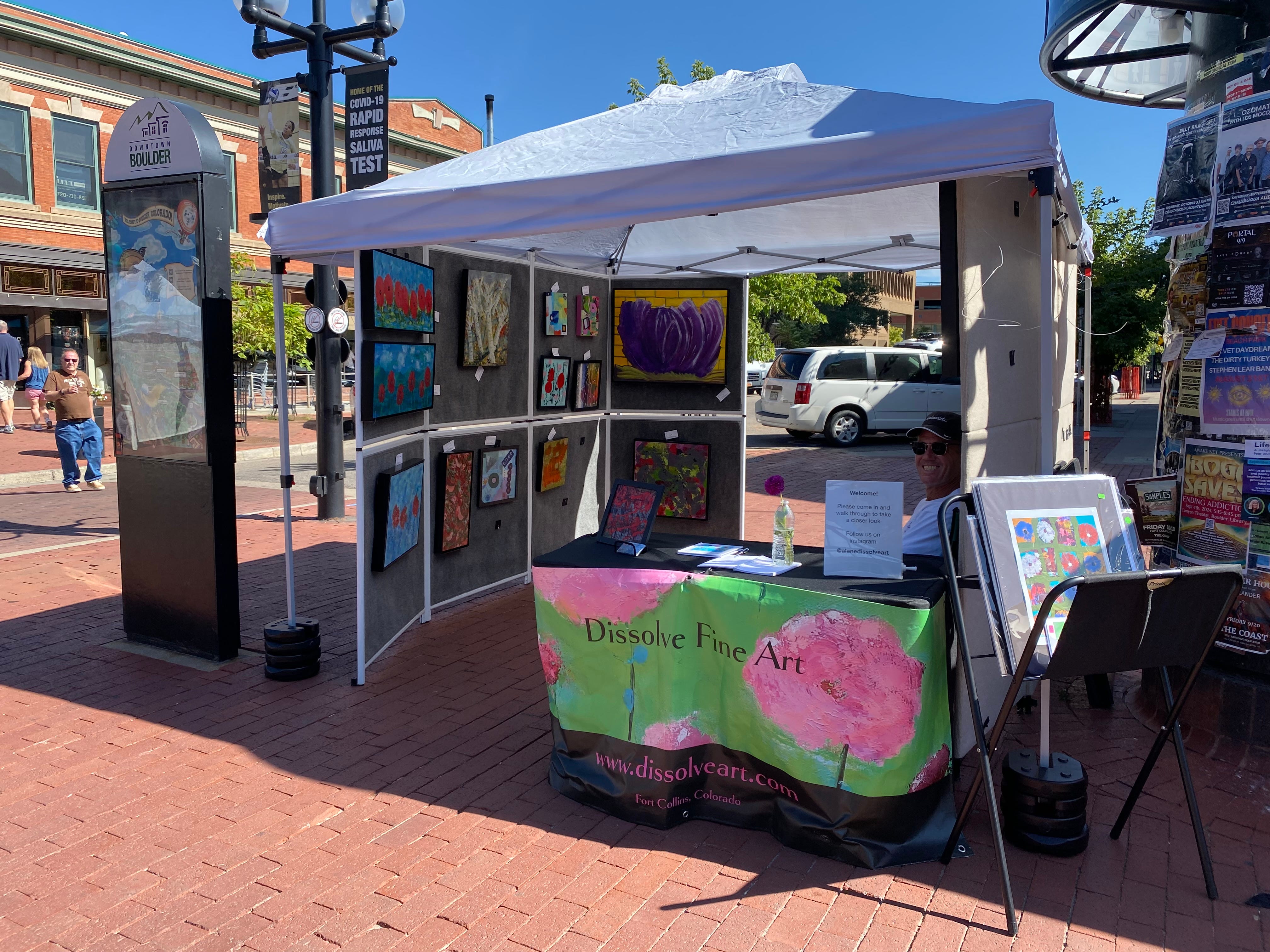I’m home after a busy, awesome weekend at the Boulder Art Festival Saturday and Sunday. I woke up late this morning and stumbled around in the kitchen, finding dog treats and coffee, feeding the girls, and finally sitting out in the studio yar…