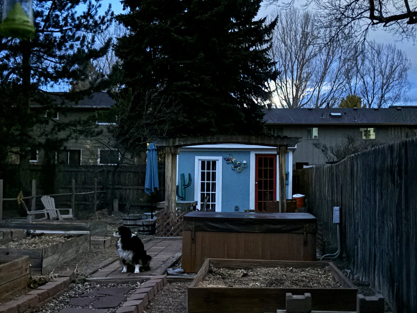 I’m not sure what time it started, but I woke up to the smell of it, and wet dog hair. Velcro was outside and then jumped back into bed, and there was that cold sensation that we’ve missed over the winter of a freshly snowed-on dog crawling into the space between us. We had the window open and as I started to wake up I could smell it and put the two together. Rain!