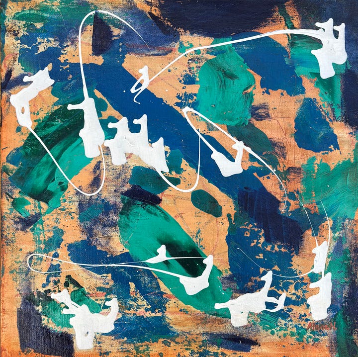 I also finished this little one on a canvas panel yesterday. I call it “The Herd”. I think it looks like seahorses. What do you think? It’s a 12 x 12.